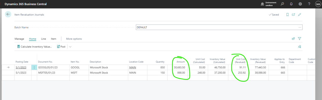 And after I post them I have the correct inventory value for my financial instruments: