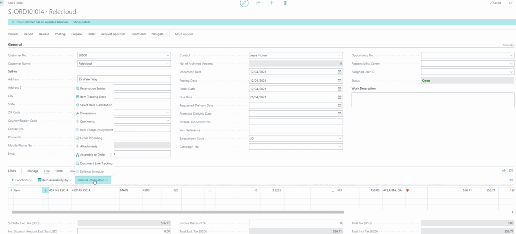 Here what we have done is created a way to choose length on the sales order which then triggers calculation that calculates the M3 of the order.