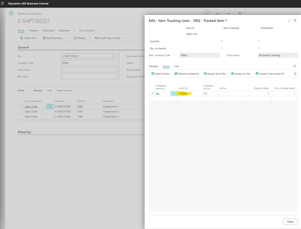 Thats it, now the Sales Shipment can be posted with correct Serial No's: