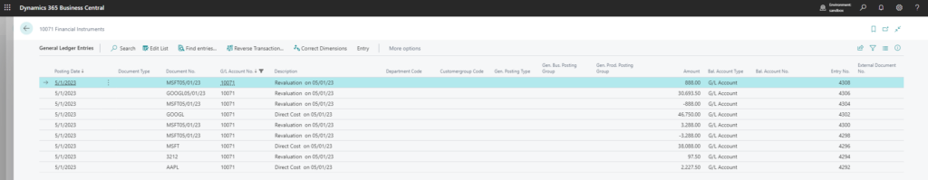 And after I post them I have the correct inventory value for my financial instruments: