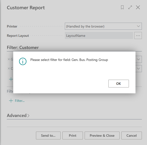 Recently I had to validate some filter selections on a report in Business Central and found out it was not so straight forward to do. What happened when using the trigger OnPreDataItem() or trigger OnPreReport() triggers was that I was able to validate the filter selections by user but the user experience was not optimal since the selection page closed when the validation error occured.
